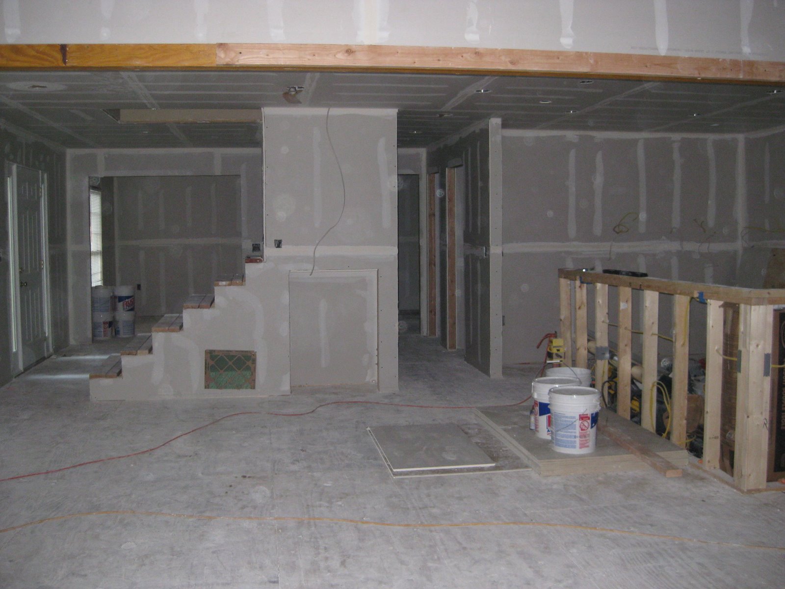 They started putting up the drywall on Saturday. The came back on Sunday to tape and mud the holes. They are coming tomorrow to continue. It is beginning to look like a house!
